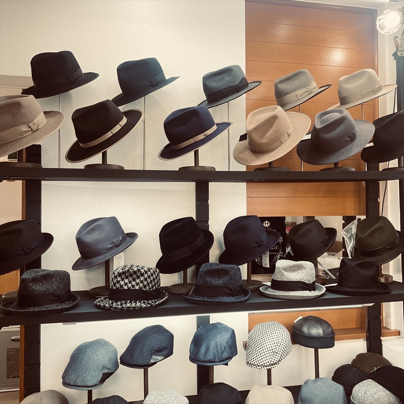 ビーバー・ラビットなど各種フェルトハット、生地の中折れハットやハンチング・キャスケットまで秋冬のメンズ向けラインナップが揃っております。
